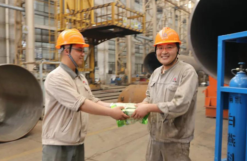 夏日炎炎,烈日當(dāng)空,進(jìn)入6月份機(jī)械公司生產(chǎn)任務(wù)逐漸繁忙起來。公司領(lǐng)導(dǎo)心系奮戰(zhàn)在生產(chǎn)一線員工,月初就每天為一線員工配送了冰糕、西瓜和綠豆湯等降溫解暑的用品。