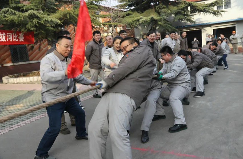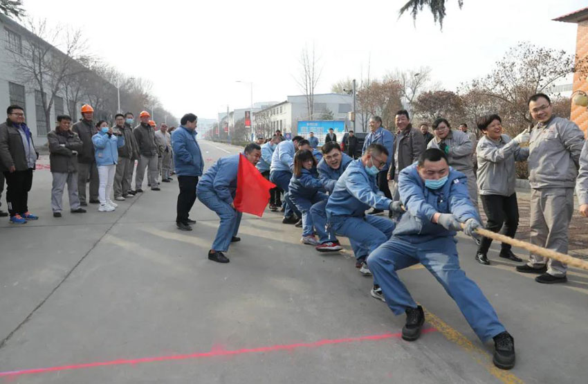 為豐富全體員工的精神文化生活,促進(jìn)員工之間的交流,發(fā)揚(yáng)團(tuán)隊(duì)精神,增強(qiáng)企業(yè)凝聚力 2021年2月26日下午,機(jī)械公司“齊心協(xié)力創(chuàng)佳績(jī),奮進(jìn)之年再出發(fā)” 慶元宵拔河比賽在公司行政辦公樓前舉行。比賽由機(jī)械公司工會(huì)主 辦,團(tuán)委協(xié)辦,來(lái)自公司各分會(huì)及齊機(jī)深冷、齊瑞無(wú)損9支代表隊(duì)共140余名選手參加了本次比賽。